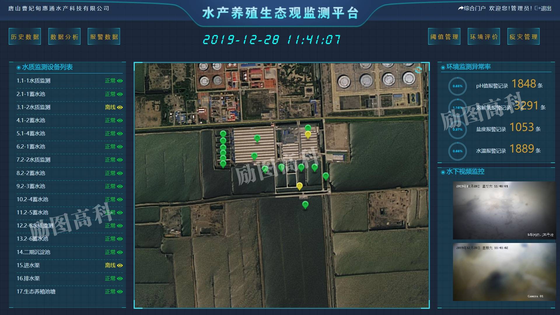 该项目以唐山曹妃甸惠通水产科技有限公司核心生产园区为建设地址,通过安装养殖环境监测传感器、智能投饵机等智能渔机设备★■■■■★,以及定制的智慧渔业养殖管理系统,实现了养殖关键环节的信息化、智慧化管理。项目的主要技术亮点包括: